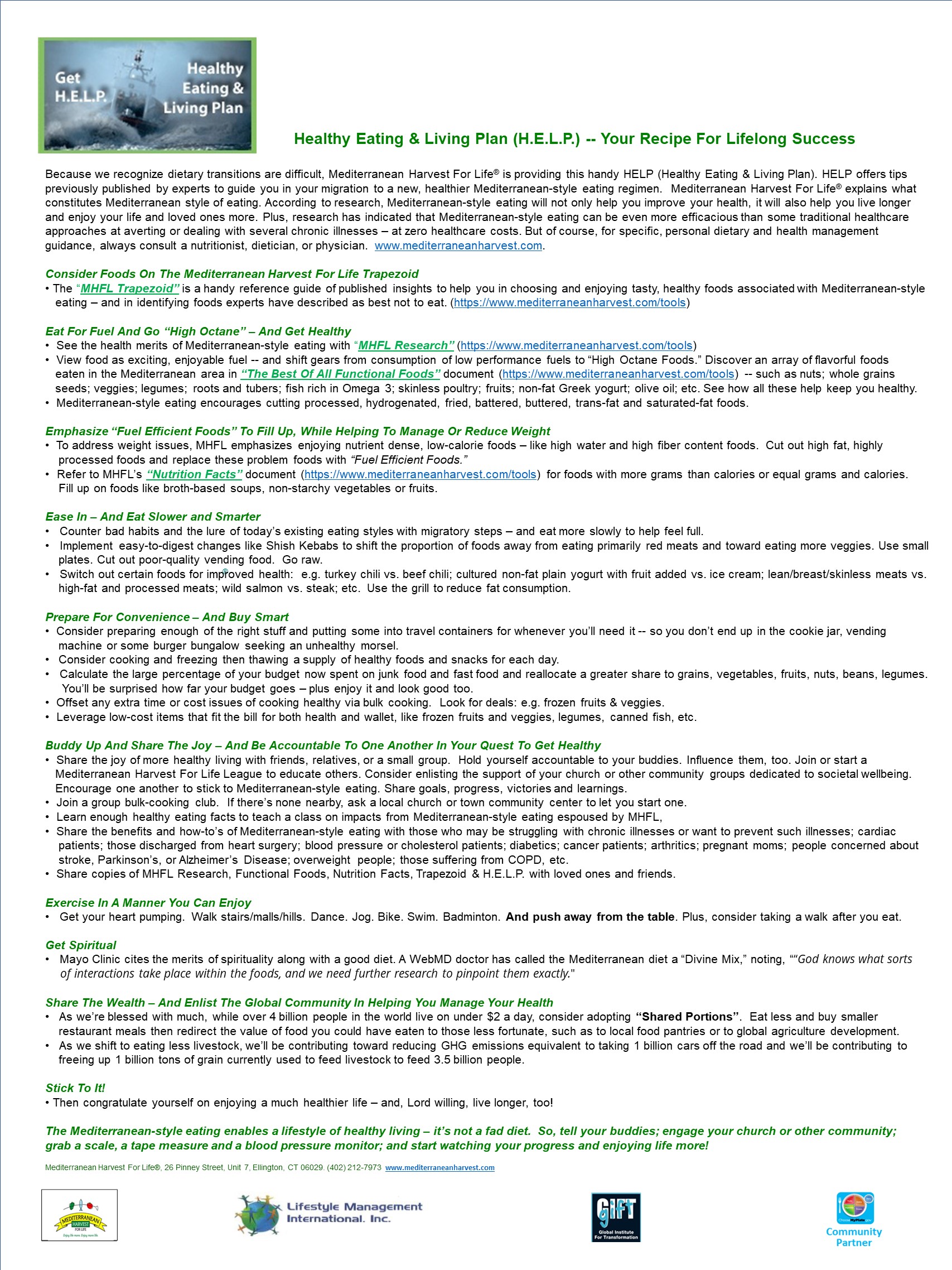 - MHFL HELP (Healthy Eating & Living Plan) offering expert-published tips to help people eat right, for optimum health and improved lifestyles